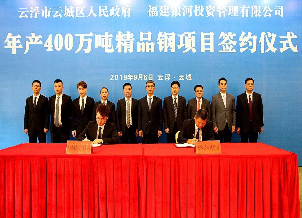 2019年9月3日,河北津西钢铁集团总投资达300亿元、产能1000万吨的又一重大钢铁项目落户防城港。项目计划分两期开发。(已购得承德、天津市钢企产能)2019年9月6日,云城区人民政府与福建银河投资管理有限公司(东海钢铁)正式签订投资协议,总投资60亿元,年产400万吨精品钢的东海钢铁项目落户云城。11月5日,紫金与福建金盛兰集团举行项目签约仪式,计划总投资约130亿元,年产600万吨优特钢生产基地项目正式落户紫金。15