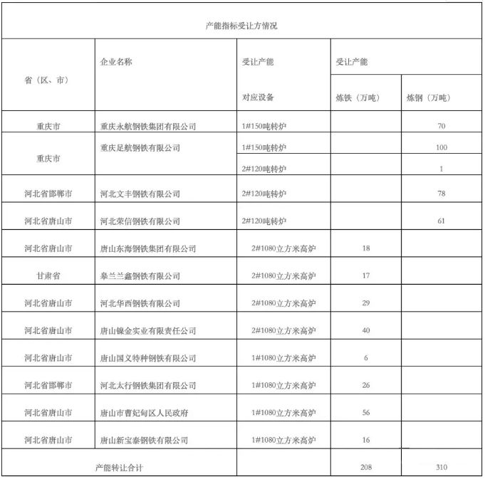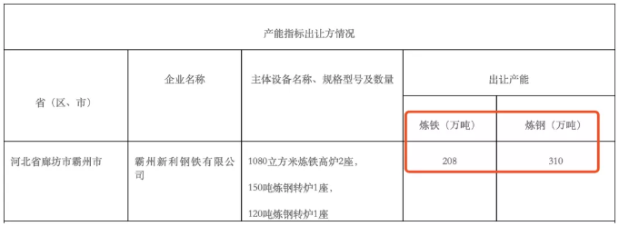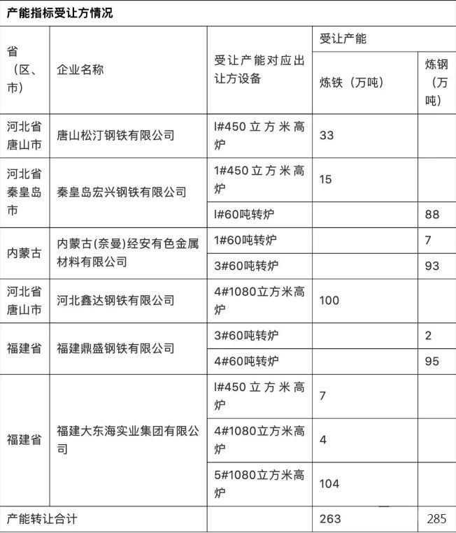 2018年7月19日晚间,柳钢集团公告完成控股广西钢铁的工商变更登记手续。项目一期工程按920万吨钢产能规模建设,总投资340亿元。目标2019年底投产。福建龙钢新型材料有限公司计划总投资250亿元,年产钢铁800万吨,分二期建设。一二期建成达产后,预计项目原材料及成品进出运量达4000万吨/年。2018年6月27日,漳平市人民政府已与福建龙钢签订项目投资合同书;9月9日福建龙钢已竞买到福建金大鑫钢铁铸造有限公司所属位于西园镇遂林村的固定资产(含土地使用权、相关设施设备等)。福建龙钢新型材料有限公司通过司法竞拍到炼铁产能65万吨,炼钢产能96万吨。2018年12月7日,广西桂鑫钢铁集团与广西梧州市藤县人民政府签订年产量1000万吨钢材项目战略框架协议,项目计划总投资263亿元。2018年1月7日,河北省工业和信息化厅发布《河北苗氏集团德普钢铁有限公司产能出让方案公示》,河北苗氏集团德普钢铁相关产能拟通过产能跨省转让的方式,以置换位于福州长乐的福建大东海实业集团相关项目所需部分产能。至此,邢台这家300万吨级的钢企(原龙海钢铁)停止复产,彻底退出邢台,退出河北省!
