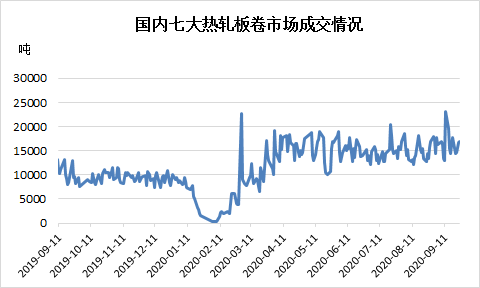 据卓创资讯监测全国七个主要热轧板卷交易市场35家贸易企业的日度成交情况,目前日度成交量基本保持在1.5万吨左右,需求相对较为稳定,热轧板卷下游行业数据中,仅挖掘机产销量较为可期,汽车、冷轧等一系列数据对于热轧板卷需求提振作用相对较为有限,热轧板卷10月份基本保持供应略大于需求的状态。