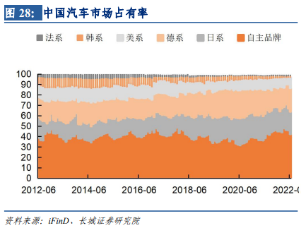 中国在新能源车赛道领先日本。2022年随着高油价的持续,新能源车的销量持续回升,日本汽车在新能源车上的发展并不具有优势。新能源车不仅仅在快速替代传统燃油车,中国自有品牌的新能源车也在跑赢国外品牌。从国内汽车的占有率来看,日本车在中国的市占率在2018-2019年期间还有所上升,但从2020年开始持续下降。从国外市场来看,今年7月21日比亚迪宣布进入日本市场,中国汽车赶超日本汽车指日可待。
